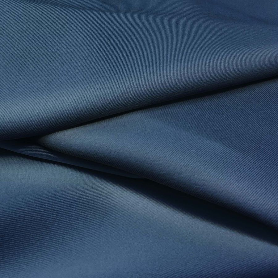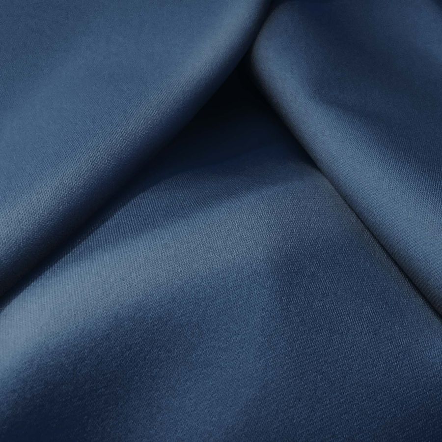 La tela base es la Sarga Bielástica - Lisboa, compuesta por 97% de poliéster y 3% de elastano, con un gramaje de 209 gr/m2 y un ancho de 150 cm. Esta tela se presenta en un color liso impreso de Azul Pizarra Oscura, cuyo contenido del CMYK es de 97 para Cyan, 76 para Magenta, 42 para Yellow y 42 para Black. La combinación de estos cuatro tonos crea un color intenso y oscuro, que simboliza la confianza y estabilidad, y que se combina especialmente bien con tonos de gris y blanco.