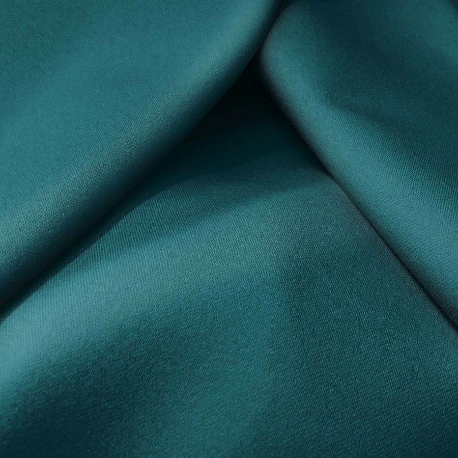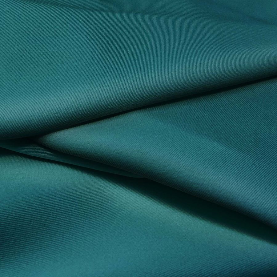 La tela base de la Sarga Bielástica - Lisboa es una sarga compuesta por un 97% de poliéster y un 3% de elastano con un gramaje de 209 gr/m2 y un ancho de 150 cm. Su color liso impreso es un verde teal profundo que se obtiene a través de la combinación de una tinta cian con un valor de 93, una magenta con un valor de 50, una amarilla con un valor de 52 y una negra con un valor de 49 en el espacio de color CMYK. Este color es una combinación equilibrada de tonalidades verdes y azules que evoca sensaciones de serenidad y estabilidad.