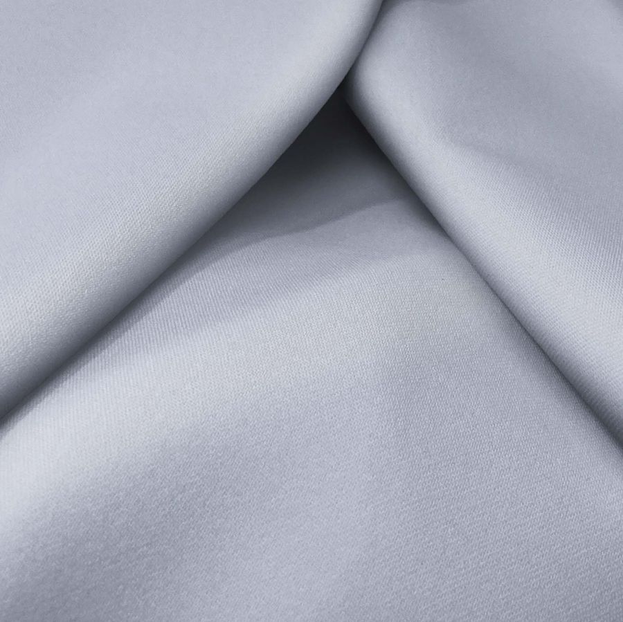 La tela base Sarga Bielástica - Lisboa presenta una composición de 97% POLIÉSTER y 3% ELASTANO, con un gramaje de 209 gr/m2 y una anchura de 150 cm. Su color liso impreso es un Azul Angel, con un CMYK de 29 18 7 0. Este color secundario simboliza la calma y la serenidad, generando una atmósfera de tranquilidad. Proporciona un efecto fresco y relajante, ideal para combinar con otros colores fríos como el blanco, el gris claro o el verde agua. Es importante destacar que la tela está impresa con el color liso a una sola cara por impresión digital textil, lo que significa que no es un tejido tintado en su totalidad sino impreso a una sola cara.