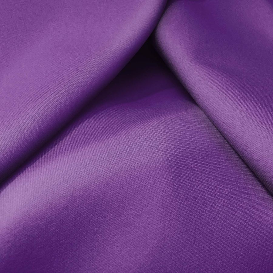 La tela base Sarga Bielástica - Lisboa tiene una composición de 97% POLIÉSTER y 3% ELASTANO, con un gramaje de 209 gr/m2 y un ancho de 150 cm. El color liso impreso en esta tela es Morado Iris Morado, con un CMYK de 75 94 15 5. Este color evoca misterio y espiritualidad, asociado a la introspección y la meditación. El Morado Iris Morado es un tono versátil que combina bien con otros morados, grises, negros y colores pasteles claros.