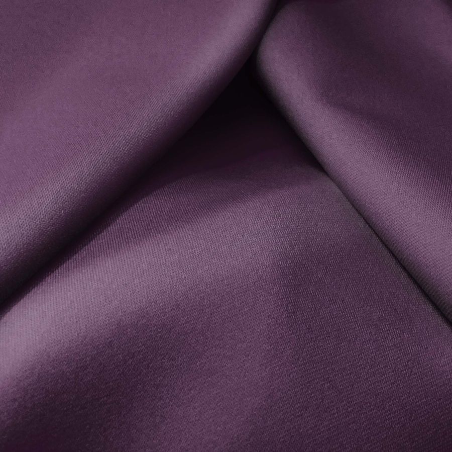 La tela base, una Sarga Bielástica-Lisboa, se compone de un 97% de poliéster y un 3% de elastano, con un gramaje de 209 gr/m2 y un ancho de 150 cm. El color liso impreso en la tela es un Morado oscuro, con un contenido de CMYK de 71, 87, 42, 51. Este tono Morado oscuro se asemeja al color de la berenjena, un color enigmático, elegante y misterioso que transmite profundidad y sofisticación. Además, este color combina muy bien con otros tonos como el verde oscuro, el gris plomo o el dorado. Es importante destacar que la tela base está impresa con el color liso a una sola cara por impresión digital textil, lo que significa que no es un tejido tintado sino impreso por una sola cara.