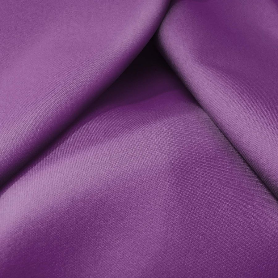 La tela base de este producto es la Sarga Bielástica - Lisboa, compuesta por un 97% de poliéster y un 3% de elastano, con un gramaje de 209 g/m2 y un ancho de 150 cm. El color liso impreso en esta tela es un morado oscuro con un contenido de 66 en Cyan, 87 en Magenta, 22 en Yellow y 9 en Black, para un CMYK de 66 87 22 9. Este color impreso presenta un tono profundo y sofisticado que combina muy bien con otros tonos oscuros, como negro o gris, y también puede contrastar bien con tonos más brillantes como turquesa o rosa.