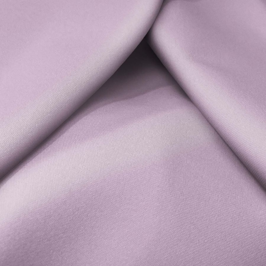 La tela base de esta prenda es la Sarga Bielástica - Lisboa, compuesta por un 97% de poliéster y un 3% de elastano, con un gramaje de 209 gr/m2 y un ancho de 150 cm. El color liso impreso es un hermoso tono de morado/ cardo morado, obtenido mediante una tecnología de impresión por sublimación con las tintas Cyan, Magenta, Yellow y Black. Es interesante señalar que este color primario obtenido se puede combinar con otros colores secundarios, como el gris, el verde y el rosa para lograr una imagen más equilibrada.