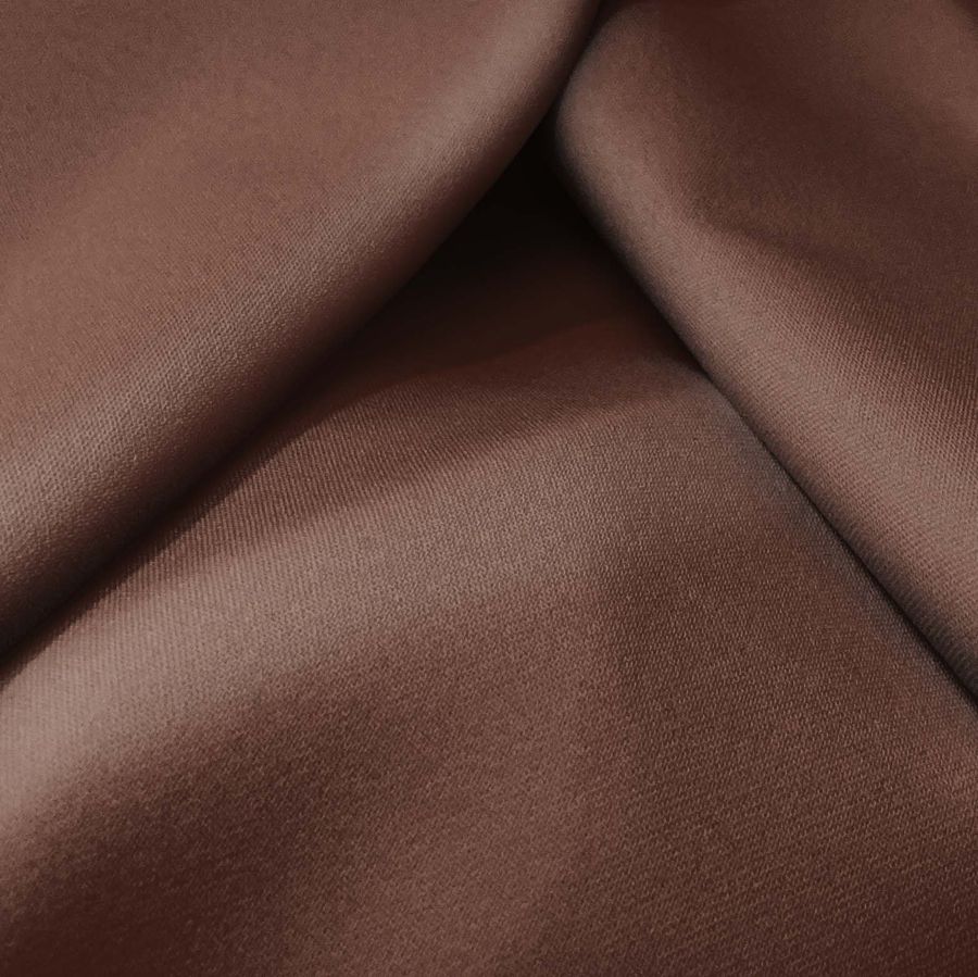 La tela base Sarga Bielástica - Lisboa tiene una composición de 97% poliéster y 3% elastano, con un gramaje de 209 gr/m2 y un ancho de 150 cm. El color liso impreso en esta tela es Marron, Noche de sangre, con un CMYK de 43 69 70 64. Este color secundario tiene una tonalidad profunda y elegante que evoca la oscuridad de la noche. Es un color que simboliza la pasión, la fuerza y la determinación, y combina especialmente bien con tonos rojizos, neutros y dorados.