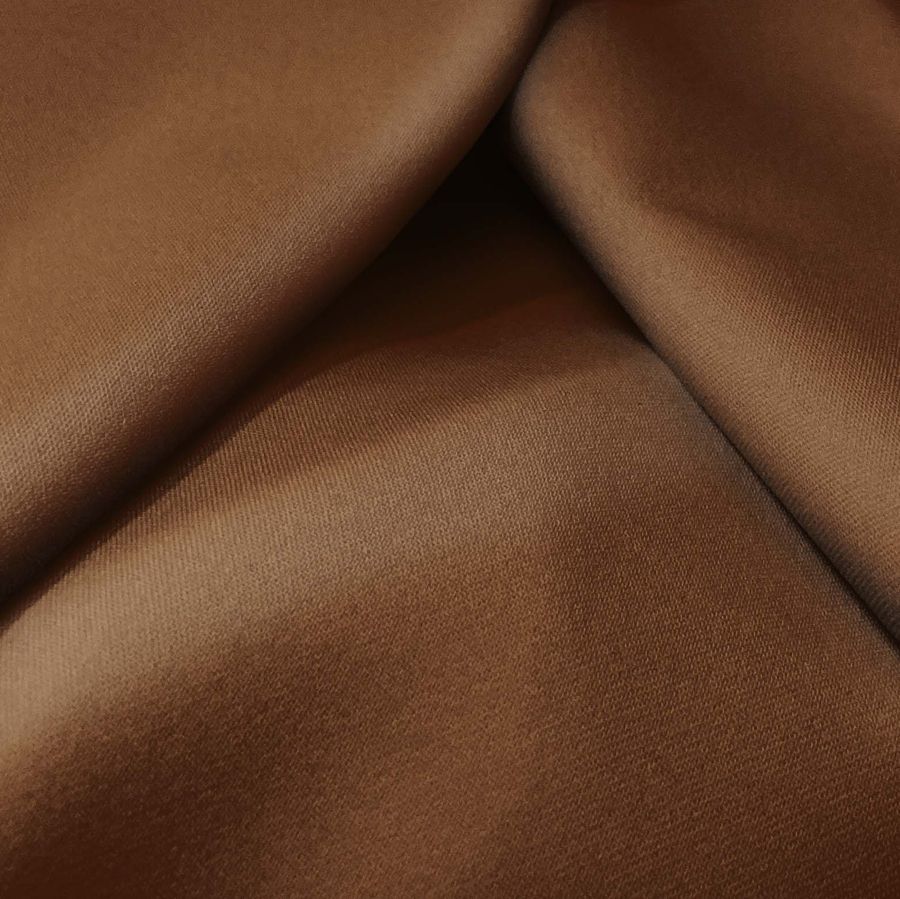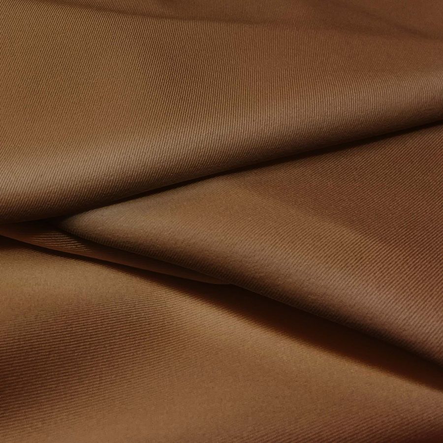 La tela base Sarga Bielástica-Lisboa presenta una composición de 97% poliéster y 3% elastano con un gramaje de 209 gr/m2 y un ancho de 150 cm. De textura rugosa, elástica y suave, se presenta en un color marrón chocolate con leche que se define mediante un CMYK de 42 73 93 62. Este tono oscuro y terroso es ideal para confeccionar prendas de moda tanto para hombres como para mujeres, faldas y pantalones, así como accesorios y textiles para hogar como cojines y paños de cocina.