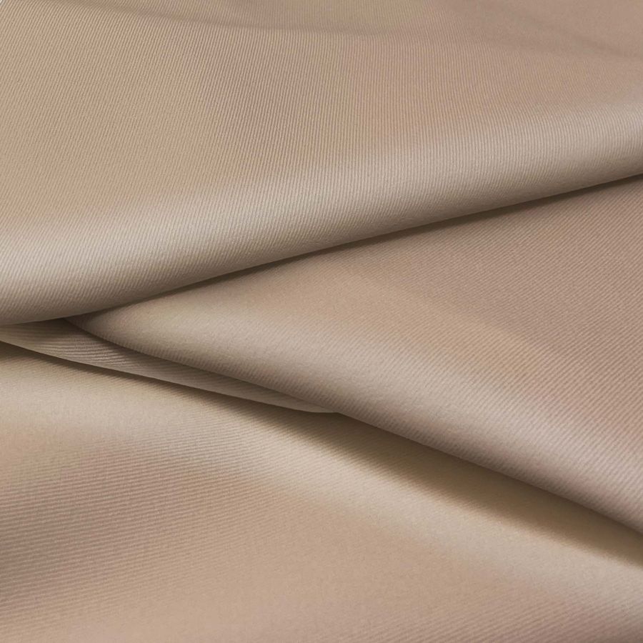 La tela base es Sarga Bielástica - Lisboa, con composición de 97% POLIÉSTER y 3% ELASTANO, peso de 209 gr/m2, ancho de 150cm, no apta para blanquear, temperatura máxima de lavado de 30ºC y admitiendo limpieza en seco excepto con tricloroetileno. El color liso impreso en la tela es Marrón camel con el CMYK 26 36 44 12. Se caracteriza por tener un tacto suave pero rugoso, y por su elasticidad. Combina especialmente bien con el marrón oscuro. La tela está impresa a una sola cara por impresión digital textil, lo que significa que el diseño se aplica solo en una cara del tejido y no está teñido en su totalidad.