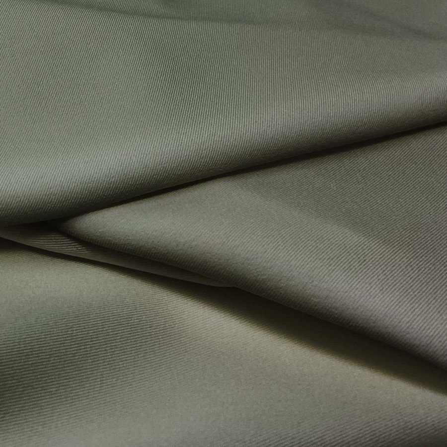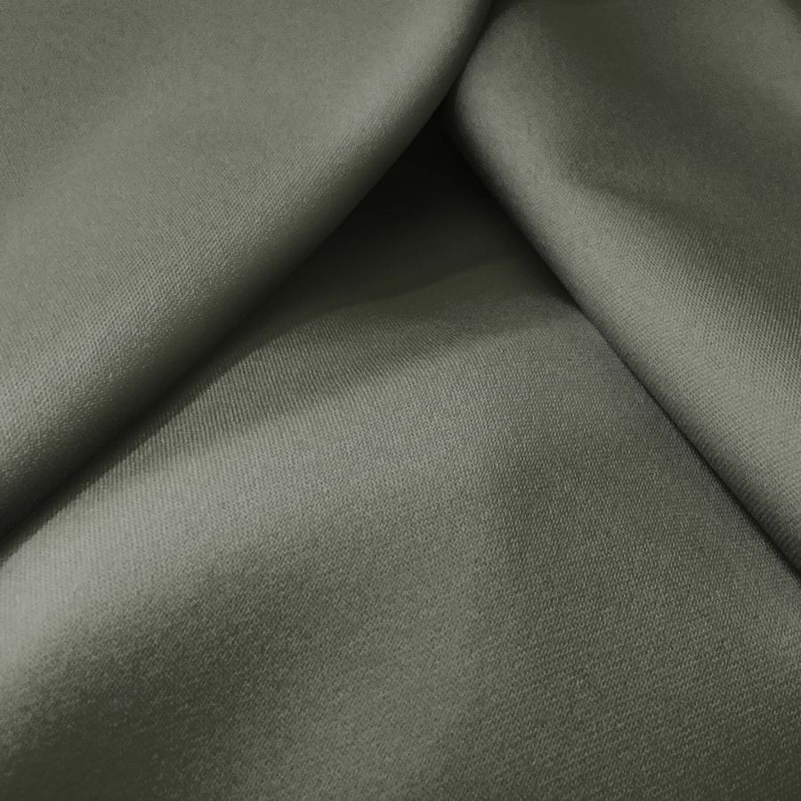 La tela base es la Sarga Bielástica - Lisboa, con un gramaje de 209 gr/m2 y una composición de 97% poliéster y 3% elastano. El color liso impreso es Gris/Gris pardo, con una tinta Cyan de 62, Magenta de 48, Yellow de 63 y Black de 47, dando como resultado un CMYK de 62 48 63 47. Este color transmite una sensación de seriedad y elegancia, además de ser un color versátil que combina muy bien con colores pastel, mostaza, blanco y negro. La tela está impresa a una sola cara por impresión digital textil.