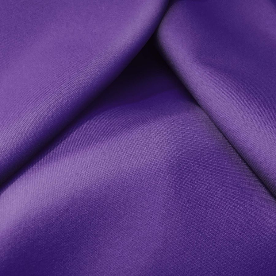 La tela base de este tejido es la Sarga Bielástica - Lisboa, compuesta por un 97% de poliéster y un 3% de elastano, con un gramaje de 209 gr/m2 y un ancho de 150 cm. El color liso impreso en esta tela es una mezcla de morado e índigo, que se obtiene a través de los siguientes valores en CMYK: 88 100 14 4. Este color secundario tiene un tono profundo y enigmático, que refleja la creatividad y la sofisticación. Se combina especialmente bien con tonos neutros como el gris, el beige y el blanco, así como con tonos más vivos como el naranja y el rosa.
