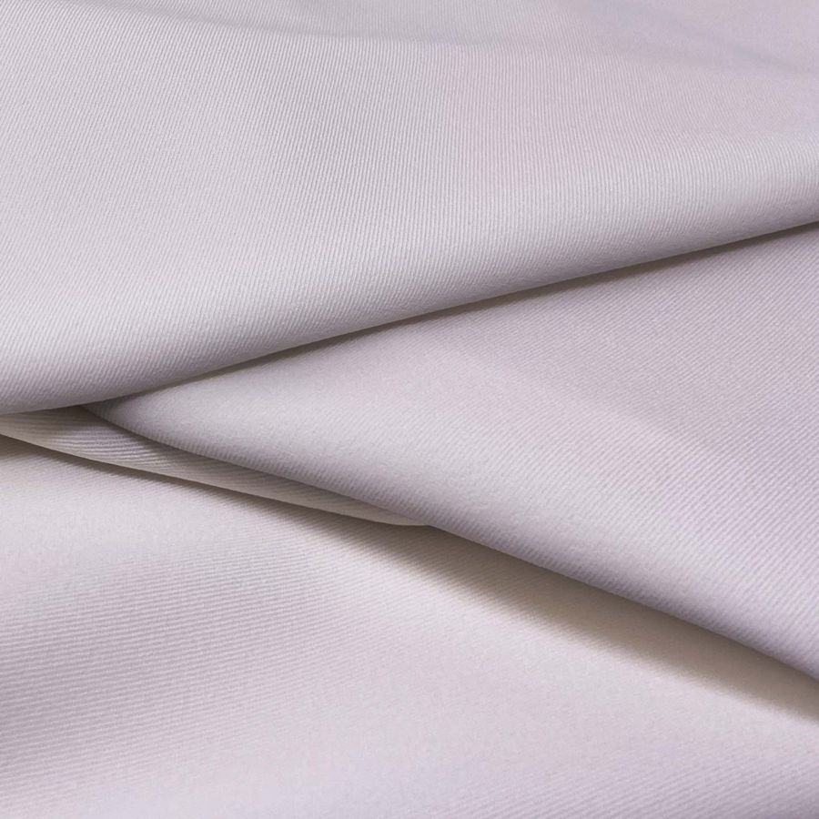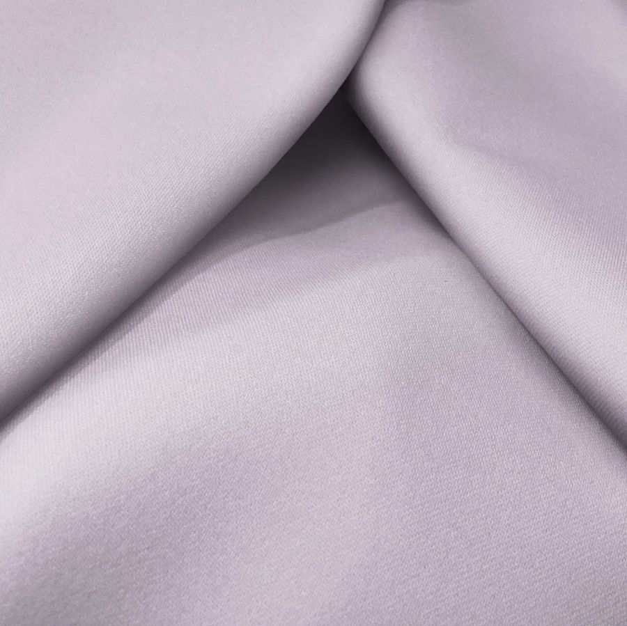 La tela base, Sarga Bielástica - Lisboa, está compuesta por un 97% de POLIÉSTER y un 3% de ELASTANO, con un gramaje de 209 gr/m2 y un ancho de 150 cm. El color liso impreso en esta tela es Morado-Bígaro, con un CMYK de 12 21 3 0. Este color representa un tono suave y sutil que combina perfectamente con azules marinos y grises pálidos, añadiendo un elemento de contraste y profundidad.