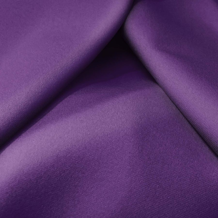 La tela base utilizada es la Sarga Bielástica - Lisboa, compuesta por un 97% de poliéster y un 3% de elastano, con un gramaje de 209 gr/m2 y un ancho de 150 cm. La impresión del color liso se realiza mediante la tecnología de sublimación (poliéster). El color impreso es morado oscuro, con una combinación de cian (83), magenta (100), amarillo (28) y negro (17) según el CMYK. Este color transmite un carácter profundo y misterioso, simbolizando la creatividad y el conocimiento. El morado oscuro se puede combinar con tonos dorados y plateados para acentuar su sofisticación.