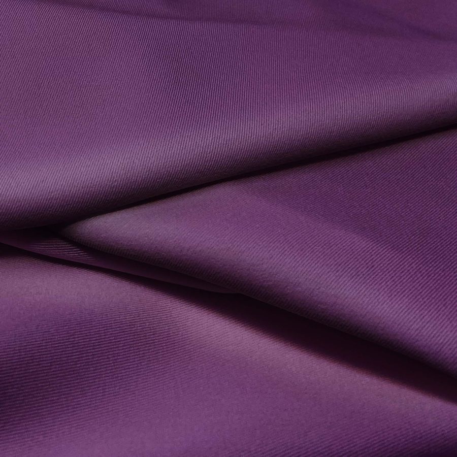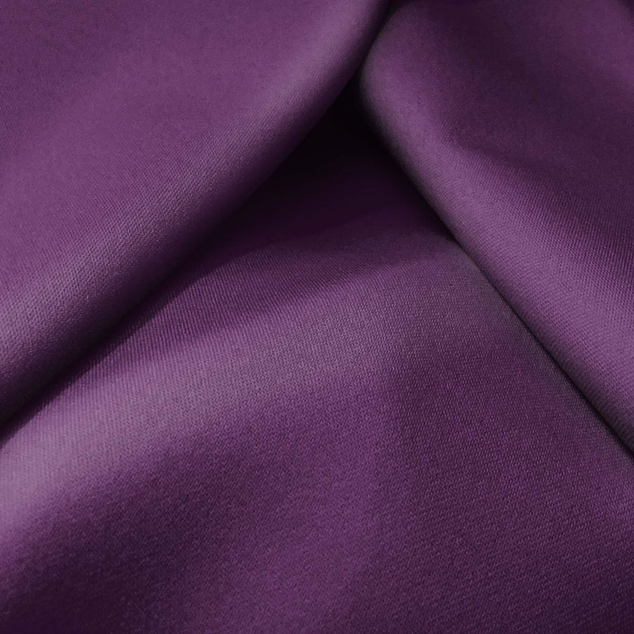 La tela base es la Sarga Bielástica - Lisboa, compuesta mayoritariamente por POLIÉSTER con un toque de ELASTANO, con un gramaje de 209 gr/m2 y un ancho de 150 cm. Su color liso impreso es un Morado oscuro que se compone de las tintas CMYK: 77 100 35 44. Este tono simboliza la riqueza, la ambición y la creatividad. Su combinación con otros colores afines como los tonos rosados, grises o azules acentúa su esplendor. La tela base está impresa con el color liso a una sola cara por impresión digital textil.