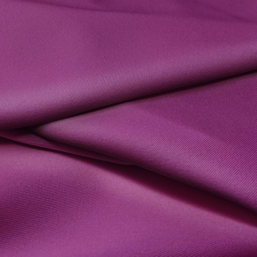 La tela base Sarga Bielástica Lisboa presenta una composición de 97% poliéster y 3% de elastano, con un gramaje de 209 gr/m2 y un ancho de 150 cm. Su color liso impreso es un tono morado berenjena con un CMYK de 58 100 29 27. Este color presenta una combinación de tonalidades que reflejan elegancia, sofisticación y profundidad. Además, es un tono muy versátil que combina perfectamente con colores muy similares como los marrones oscuros y los azules profundos, así como también con colores contrastantes como los tonos beige y marfil.