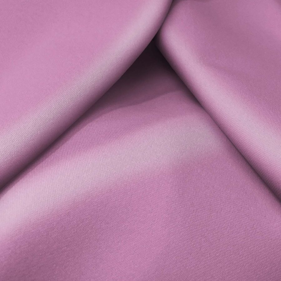 La tela base, Sarga Bielástica - Lisboa, cuenta con una composición de 97% poliéster y 3% elastano, lo que le otorga un gramaje de 209 gr/m2 y un ancho de 150cm. Su color liso impreso es un elegante y delicado rosa Cadillac que se compone de una mezcla de tintas Cyan (18), Magenta (57), Yellow (4) y Black (0), según el modelo de impresión CMYK (18 57 4 0). Este color rosa destaca por su luminosidad y sofisticación, y combina perfectamente con tonos beige, marrones y rosados más claros.