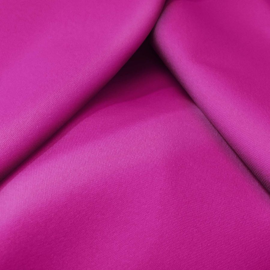 La tela base, Sarga Bielástica - Lisboa, es una sarga compuesta por 97% POLIÉSTER y 3% ELASTANO, con un gramaje de 209 gr/m2 y un ancho de 150 cm. En cuanto al color liso impreso, su CMYK es de 33 100 2 1, lo que se traduce en un rosa con toques de medio violeta rojo. Este color simboliza una combinación de energía y pasión, ideal para dar un toque alegre y atrevido a cualquier prenda o tela.