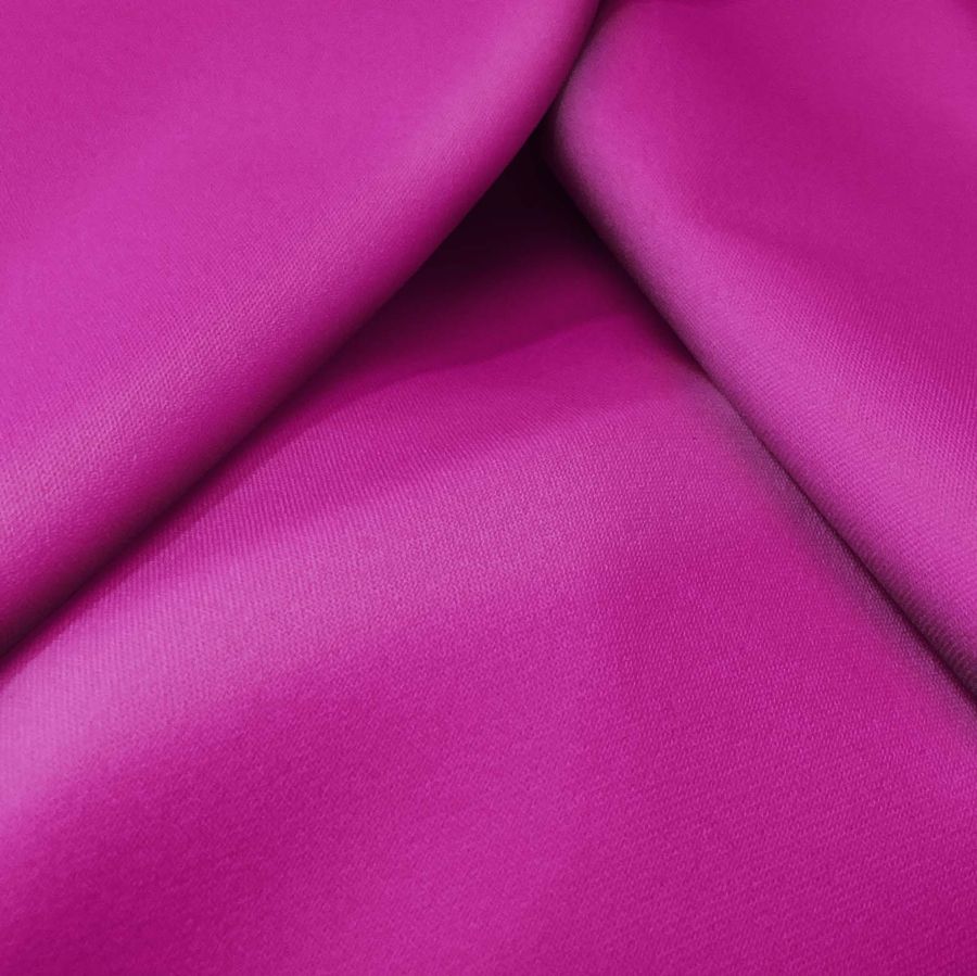 Esta tela base, la Sarga Bielástica - Lisboa, de composición 97% poliéster y 3% elastano, tiene un peso de 209 gr/m2 y un ancho de 150 cm. El color liso impreso es un morado ciruela rosa con una combinación de tintas Cyan 35, Magenta 100, Yellow 1 y Black 1, que dan como resultado un CMYK de 35 100 1 1. La tela impresa a una sola cara por impresión digital textil, ofrece una textura rugosa, elástica y suave, caracterizando la sensación al tacto. En cuanto a las aplicaciones y usos de esta tela, podemos destacar en moda tanto para mujer como para hombre, siendo ideal para pantalones, shorts, faldas, accesorios y vestidos. Para el hogar, tiene aplicaciones en la cocina y el salón, como servilletas, cojines de cocina y de salón. Su temporada es atemporal y su tecnología de impresión es por sublimación.