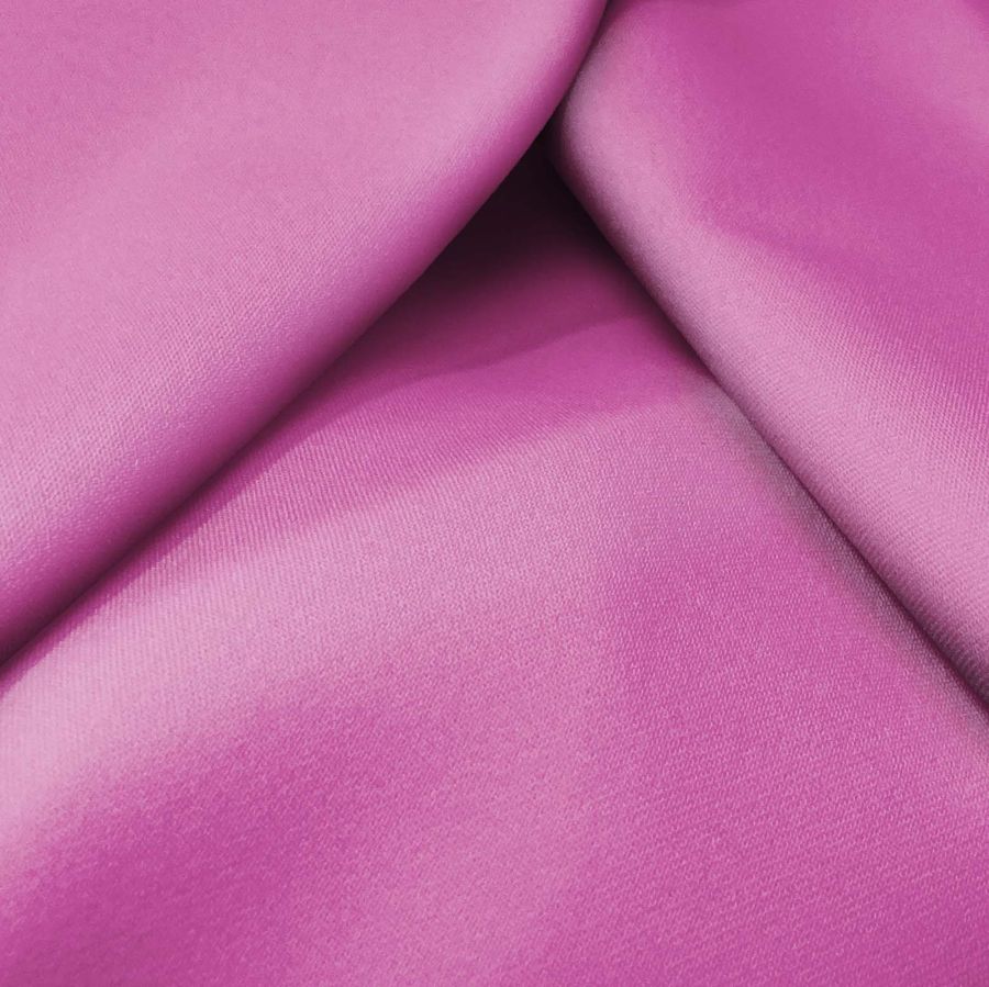 La tela base Sarga Bielástica - Lisboa es una tela de composición de 97% POLIÉSTER y 3% ELASTANO con un gramaje de 209 gr/m2 y un ancho de 150 cm. El color liso impreso con tinta sublimación es una combinación de Rosa y Ciruela rosa, con un CMYK de 22 74 5 0. Este color transmite un simbolismo de dulzura, feminidad y romanticismo en combinación con un toque de elegancia y sofisticación. Este color secundario se combina bien con una amplia variedad de tonos, como el gris, el negro, el blanco, el marrón y el verde.