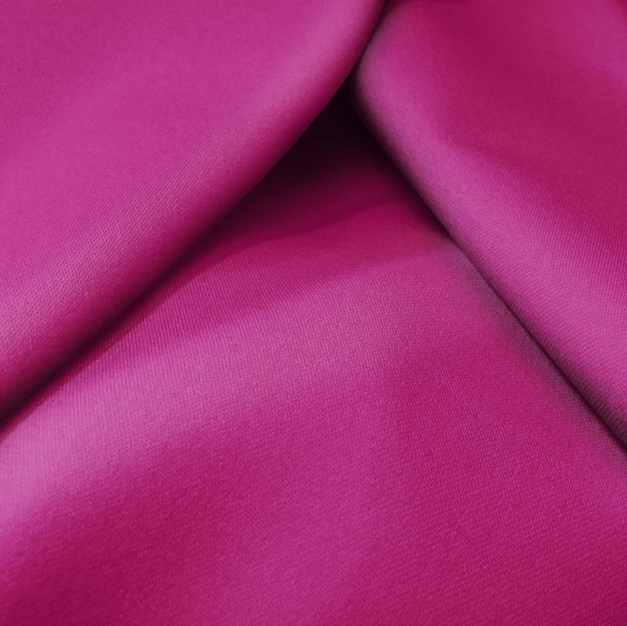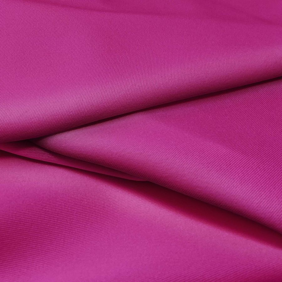 La tela base, Sarga Bielástica - Lisboa, está compuesta en un 97% de poliéster y un 3% de elastano, lo que le brinda un aspecto rugoso, elástico y suave al tacto. Su gramaje de 209 gr/m2 y un ancho de 150 cm la convierten en una tela resistente y duradera. El color liso impreso en esta tela es un tono morado intenso con tonalidades de ciruela morada, que se obtiene a través de la combinación de 34% de tinta cian, 100% de tinta magenta, 21% de tinta amarilla y 13% de tinta negra, reflejando un CMYK de 34 100 21 13. Este color secundario combina perfectamente con tonos oscuros como el negro y el gris, así como con tonos cálidos como el naranja y el rosa.