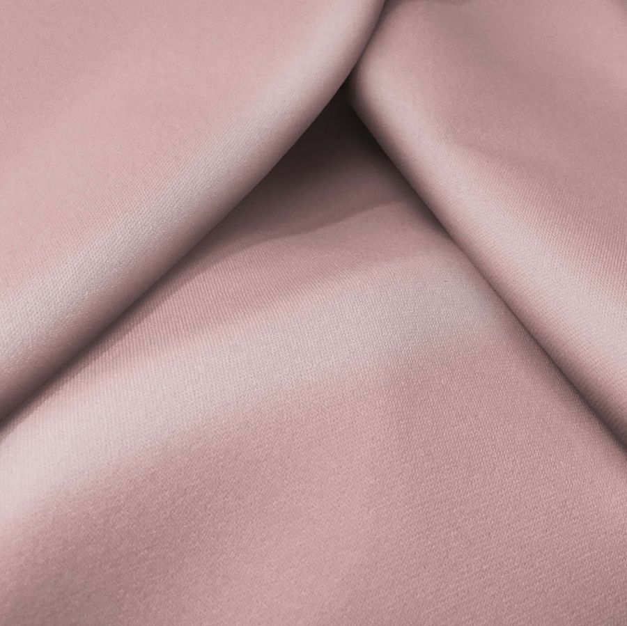 La tela base de este tejido es la Sarga Bielástica - Lisboa de composición 97% POLIÉSTER y 3% ELASTANO, con un gramaje de 209 gr/m2 y un ancho de 150 cm. El color liso impreso es un rosa suave, similar al color Margarita rosa, con un CMYK de 11 39 25 1. Este color simboliza la sensibilidad, la inocencia y el romanticismo, además es un color muy versátil que combina bien con tonos claros como el blanco o el beige, y también con tonos más oscuros como el azul marino o el negro.
