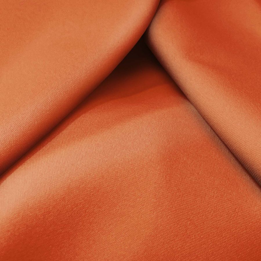 La tela base Sarga Bielástica - Lisboa presenta una composición de 97% poliéster y 3% elastano, con un gramaje de 209 gr/m2 y un ancho de 150 cm. El color liso impreso es Naranja Toronja, representado por la combinación CMYK 16 77 92 5. Este color secundario se caracteriza por su tonalidad brillante, alegre y energizante, evocando sensaciones de entusiasmo y creatividad. Además, el Naranja Toronja combina bien con tonos amarillos, rojos y tierras, creando una paleta cálida y estacional.