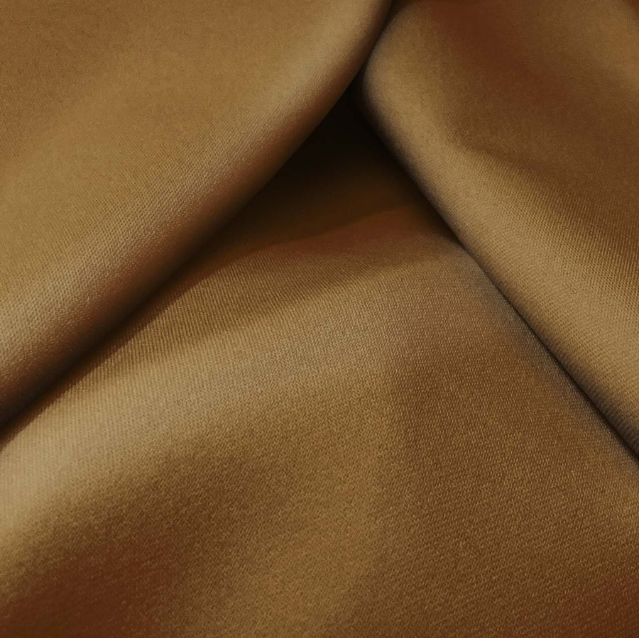 La tela base, Sarga Bielástica - Lisboa, es una sarga compuesta por 97% poliéster y 3% elastano con un gramaje de 209 gr/m2 y un ancho de 150 cm. El color liso impreso es marrón oscuro, cuyo CMYK es 39 62 95 52. Este color se puede describir como elegante, sofisticado y cálido, y combina a la perfección con tonos tierra y pasteles claros.