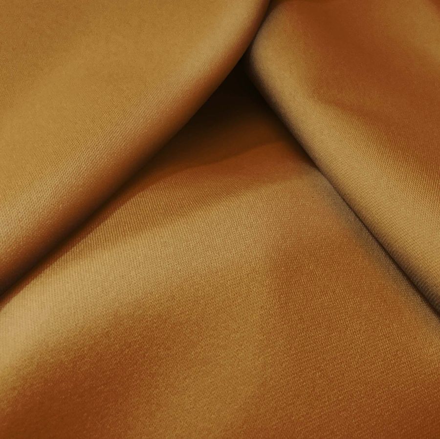 La tela base Sarga Bielástica - Lisboa tiene una composición de 97% poliéster y 3% elastano, con un gramaje de 209 gr/m2 y un ancho de 150 cm. Su color liso impreso es Marrón Sillín Marrón, del que podemos deducir su CMYK: 32 63 100 35. Este color es un marrón oscuro, profundo y elegante, que está formado por una combinación de tintas de alto contraste. Su tonalidad evoca a la del cuero, lo que lo hace adecuado para prendas y accesorios de moda. Combina bien con tonos neutros, como el beige y el gris, así como con otros colores oscuros.
