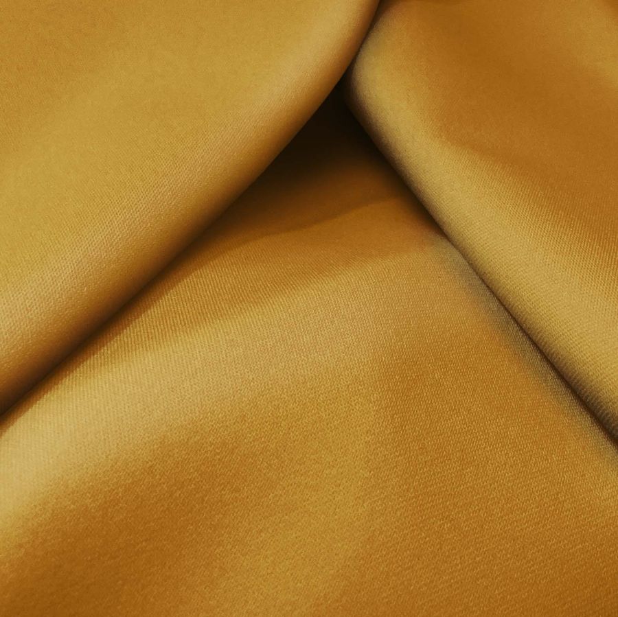 La tela base es la Sarga Bielástica-Lisboa, compuesta por un 97% de poliéster y un 3% de elastano, con un gramaje de 209 gr/m2 y un ancho de 150 cm. Su color liso impreso es un Marrón claro con un CMYK de 27 54 100 22. Este color se desprende de una mezcla tonal de marrones, con toques cálidos y suaves en su apariencia. El color secundario del Marrón en este color liso es un tono amarillo saturado, con un subtono cálido. Combina bien con colores como el blanco, negro, tonos crudos, y verdes oscuros.