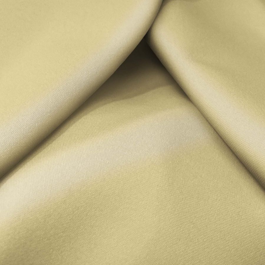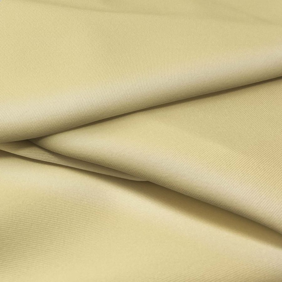 El tejido base de nuestra tela es la Sarga Bielástica - Lisboa, compuesta mayoritariamente por poliéster (97%) y un 3% de elastano, con un gramaje de 209 gr/m2 y un ancho de tela de 150 cm. En cuanto al color, se ha impreso un amarillo sol vibrante mediante el proceso de sublimación, con un CMYK de 6 15 50 0, lo que hace que el color sea intenso y duradero en el tiempo.