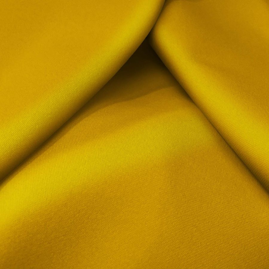 La tela está impresa con el color liso a una sola cara por impresión digital textil, lo que significa que el color se ha depositado sobre la superficie de la tela sin penetrar en ella. La textura de la tela es rugosa al tacto debido a su composición de sarga, lo que le confiere una gran resistencia y flexibilidad. Además, gracias a su contenido en elastano, la tela es elástica y cómoda de llevar.