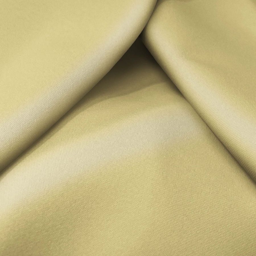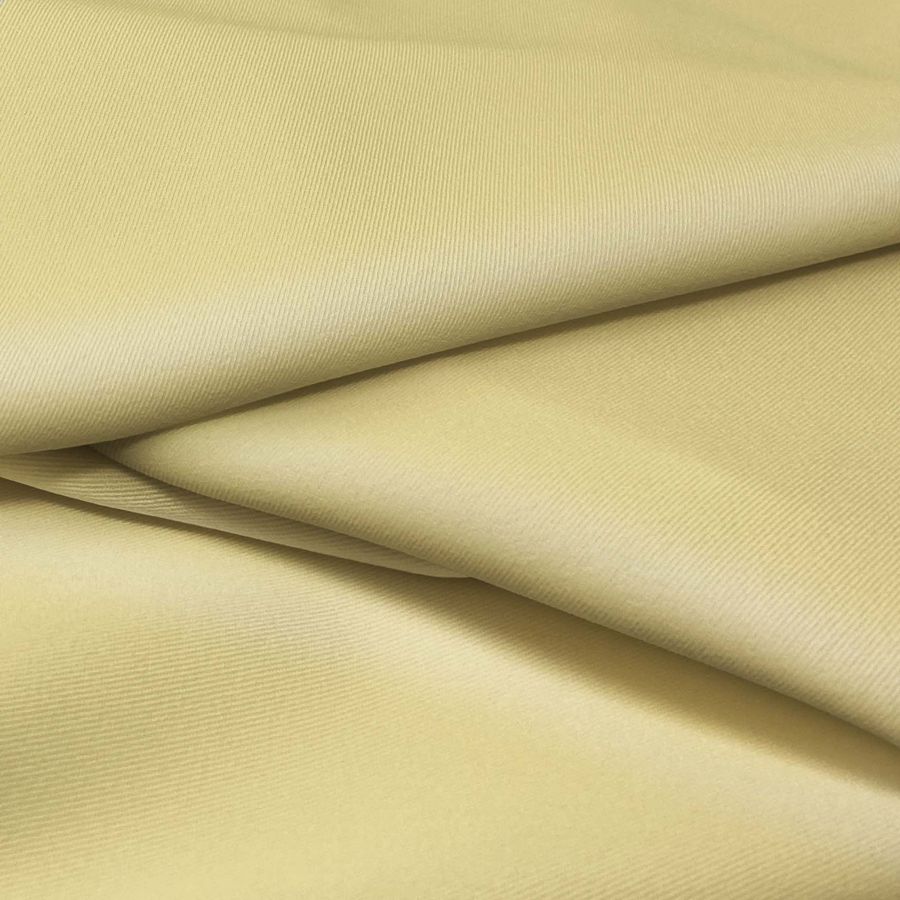 La tela base es la Sarga Bielástica - Lisboa, compuesta por un 97% de POLIÉSTER y un 3% de ELASTANO, con un gramaje de 209gr/m2, ancho de 150 cm y sin haber sido blanqueada. El color liso impreso es un Amarillo sol, con un CMYK de 7 14 55 0. Es un color brillante y alegre que simboliza optimismo, creatividad y energía. Además, se asocia con la luz solar y el calor.