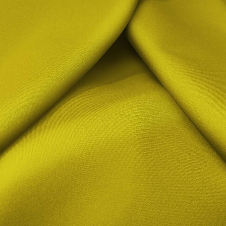 En cuanto a las características generales de la tela base y del color liso, podemos decir que la Sarga Bielástica es un tejido con una textura rugosa, tacto suave y elástico gracias al contenido de elastano. Por otro lado, el color amarillo-marrón galleta se caracteriza por tener una gran resistencia al lavado y al desgaste.