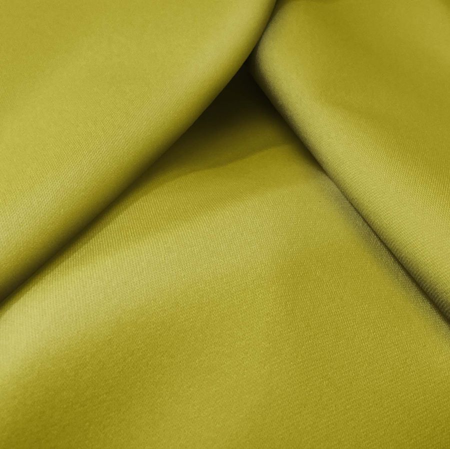 La tela base, Sarga Bielástica - Lisboa, se compone de 97% poliéster y 3% elastano, con un gramaje de 209 gr/m2 y una anchura de 150 cm. El color liso impreso en esta tela es verde olivo, con una combinación de cian (40), magenta (31), amarillo (100) y negro (15) en el CMYK. Este color simboliza una sensación de serenidad y frescura, mientras que técnicamente es rugoso, elástico y suave al tacto.