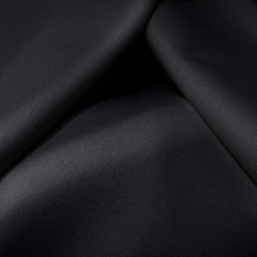 La tela base, Sarga Bielástica - Lisboa, es una sarga de alta calidad compuesta por 97% poliéster y un 3% de elastano, con un gramaje de 209 gr/m2 y un ancho de 150 cm. El color liso impreso que se utiliza en esta tela es negro nocturno, que se obtiene a través de las tintas cian (93), magenta (80), amarilla (59) y negra (95), con una combinación de CMYK de 93 80 59 95. El color de esta tela es muy oscuro y profundo, lo que le da un aspecto misterioso y elegante. Combina muy bien con tonos brillantes y neutros.