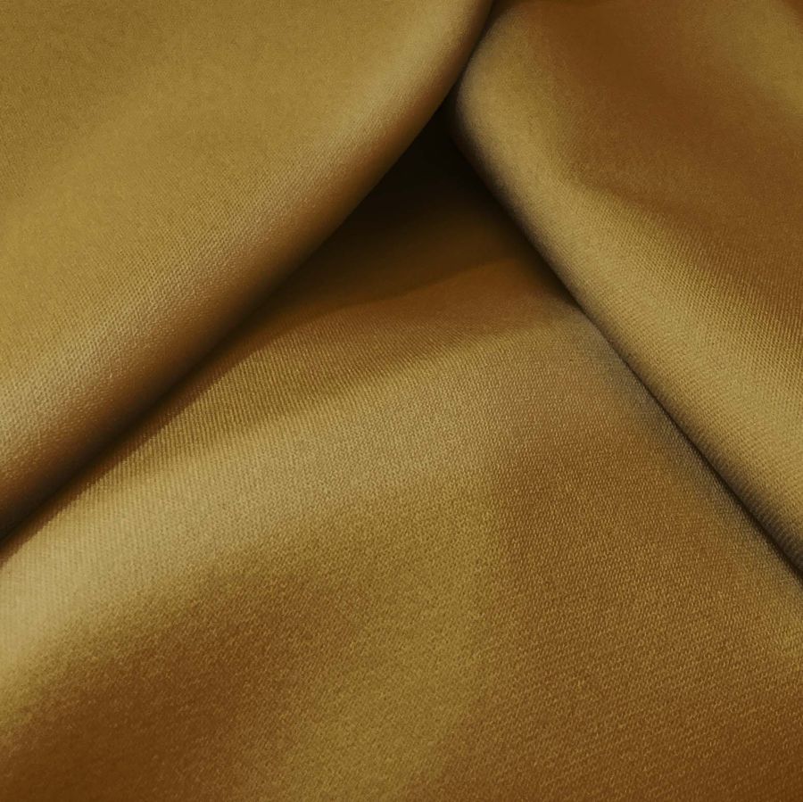 La Sarga Bielástica - Lisboa es una tela con una composición del 97% de poliéster y un 3% de elastano, lo que le confiere una ligera elasticidad que la hace ideal para prendas ajustadas al cuerpo. Con un gramaje de 209 gr/m2 y ancho de 150 cm, esta sarga de textura rugosa y suave al tacto, se presenta en color marrón oscuro impreso mediante tecnología de sublimación con las tintas CMYK: 38 55 100 44. Este color, con un alto porcentaje de amarillo y magenta, es cálido y favorecedor por sí solo o combinado con otros colores de la gama terrosa.