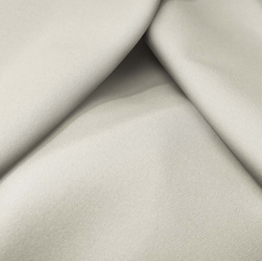La tela base de este producto es la Sarga Bielástica - Lisboa, compuesta por un 97% de POLIÉSTER y un 3% de ELASTANO, con un gramaje de 209 gr/m2 y una anchura de 150 cm. El color liso impreso es Blanco con una tonalidad de Cáscara de huevo, de acuerdo con el contenido en CMYK de 2 4 18 0.
