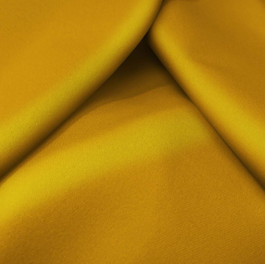 Esta tela base es rugosa al tacto, elástica y suave, lo que la hace ideal para diversas aplicaciones en moda, textil para el hogar y decoración. Además, la sarga es un tejido muy resistente y duradero. El color liso impreso es vibrante y aporta calidez y un toque de elegancia. Se combina bien con tonos cálidos como beige, marrón y amarillo.