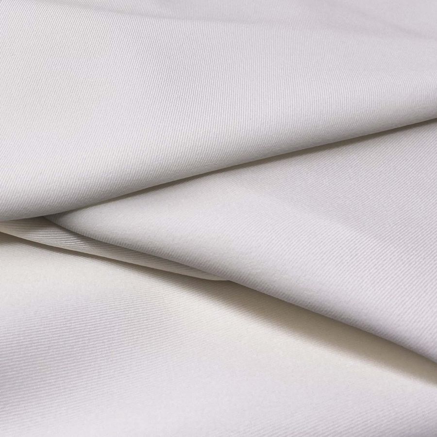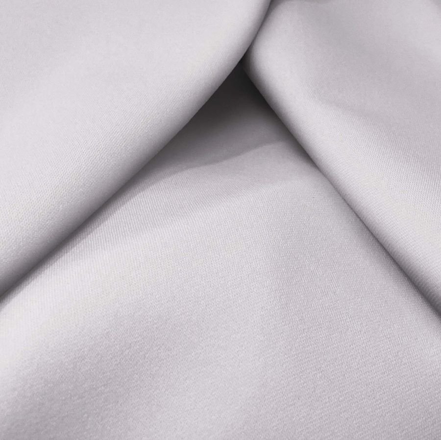 La tela base, Sarga Bielástica - Lisboa, está compuesta por un 97% de poliéster y un 3% de elastano, por lo que ofrece una textura rugosa y elástica, así como un tacto suave. En su color liso impreso, el cual tiene un CMYK de 3 9 2 0, encontramos una combinación de blanco y perla que refleja delicadeza y elegancia. Este color se combina especialmente bien con tonos rosas y grises.