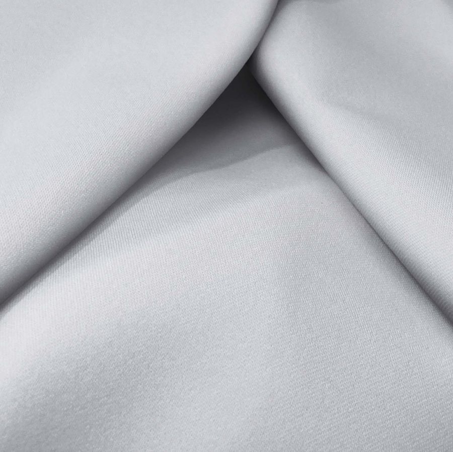 La tela base está impresa con el color liso a una sola cara por impresión digital textil, lo que significa que no es un tejido tintado sino impreso por una sola cara. La textura es rugosa, elástica y suave al tacto. En cuanto al color impreso, su opacidad y definición son inmejorables y su tonalidad es uniforme en toda la tela.