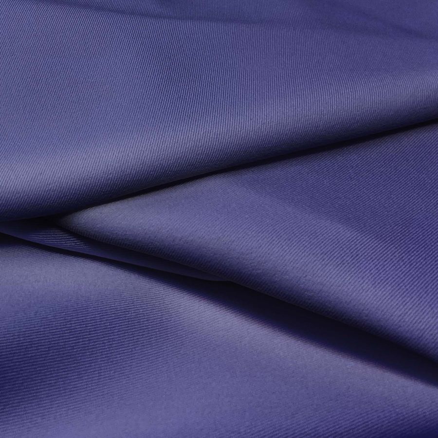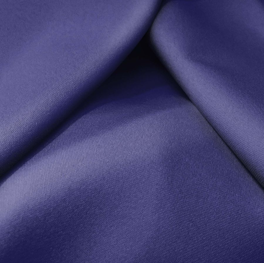 La tela base de esta prenda es la Sarga Bielástica - Lisboa de composición 97% poliéster y 3% elastano con un gramaje de 209 gr/m2 y un ancho de 150 cm. El color liso impreso en la tela es una combinación de morado y noche azul, con un CMYK de 94 89 28 19. Este color secundario es elegante, sofisticado y misterioso, ideal para prendas de moda y decoración interior. Además, se combina bien con colores neutros como el blanco y el negro, y también con tonos oscuros como el verde oscuro y el gris.