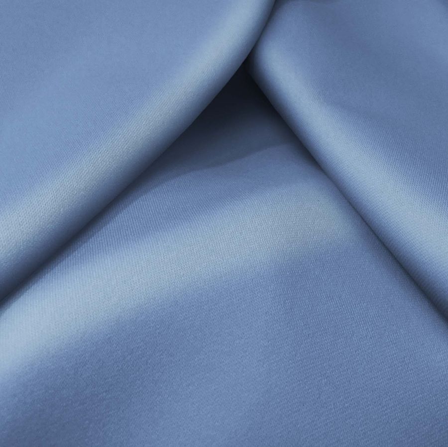 La tela base de este tejido es la Sarga Bielástica - Lisboa, se compone de un 97% de poliéster y un 3% de elastano, tiene un gramaje de 209 gr/m2 y un ancho de 150 cm. El color liso impreso es azul aciano, con un CMYK de 62 41 8 0. Este color transmite calma y frescura, evocando el cielo y el mar. Combinado con otros azules más oscuros o con tonalidades de gris, crea una atmósfera serena y elegante.