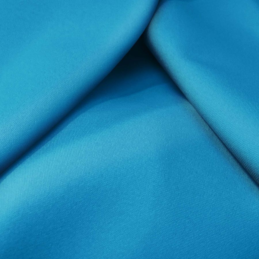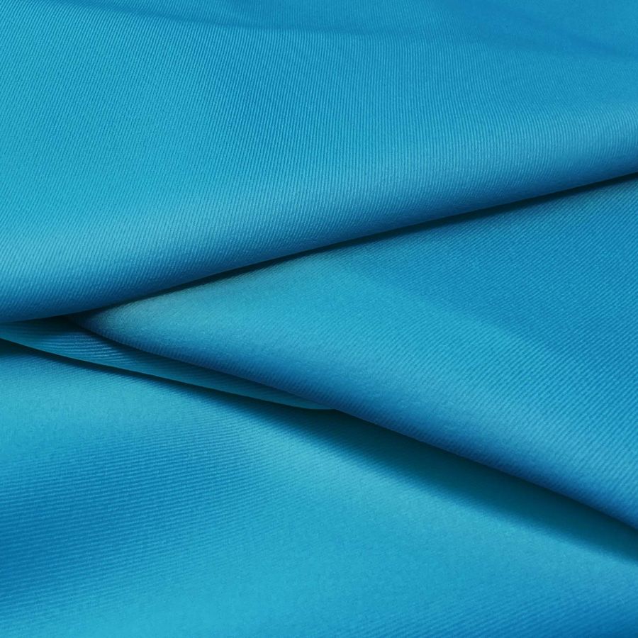 La tela base, Sarga Bielástica - Lisboa, es una sarga compuesta por un 97% de poliéster y un 3% de elastano, con un gramaje de 209 gr/m2 y un ancho de 150 cm. El color liso impreso es de un hermoso azul hiedra, obtenido mediante la combinación de una tinta Cyan del 84%, una tinta Magenta del 39%, una tinta Yellow del 13% y una tinta Black del 2%, lo que forma un tono armonioso y único. Este color combina a la perfección con los tonos tierra, beige, marrón y gris claro.