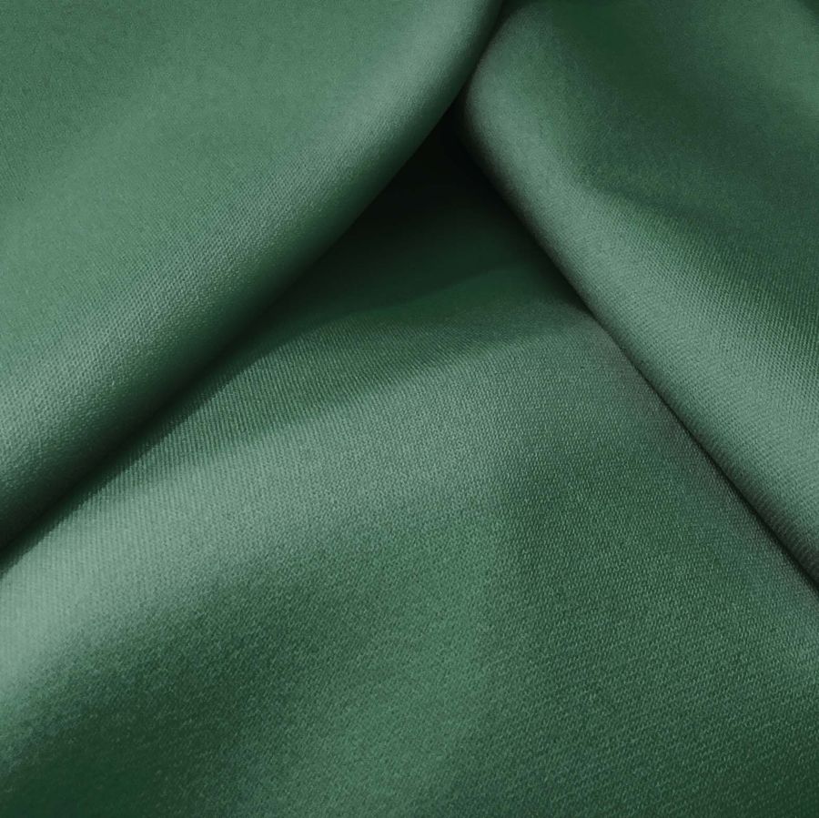 La tela base de esta prenda es la Sarga Bielástica - Lisboa, compuesta por 97% de poliéster y 3% de elastano con un gramaje de 209 gr/m2 y un ancho de 150 cm. El color liso impreso es en tonalidades de verde y verde mar profundo, con un CMYK de 80 42 74 43. Este color simboliza la naturaleza y la calma, y combina a la perfección con tonos tierra y marrones.