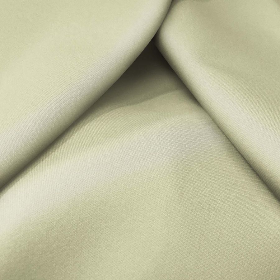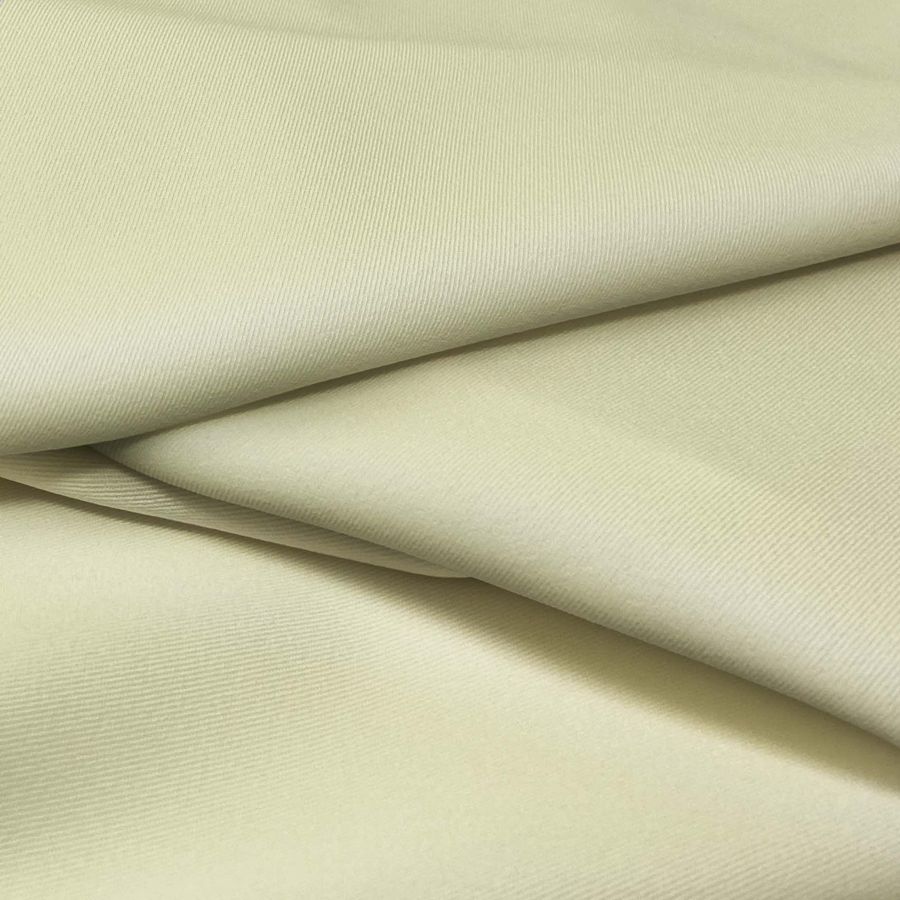La tela base Sarga Bielástica - Lisboa cuenta con una composición de 97% poliéster y 3% elastano, con un gramaje de 209 gr/m2 y un ancho de 150 cm. Sus cuidados incluyen no blanquear, temperatura máx. 30ºC, limpieza en seco exceptuando el tricloroetileno, planchado a temperatura fría, y no se puede secar con secadora. El color liso impreso, con un CMYK de 10 4 38 0, se presenta en una tonalidad entre crudo y caqui. Este color es altamente combinable con tonos cálidos, como el marrón y el naranja. La textura de la tela base puede ser rugosa, elástica y suave al tacto.