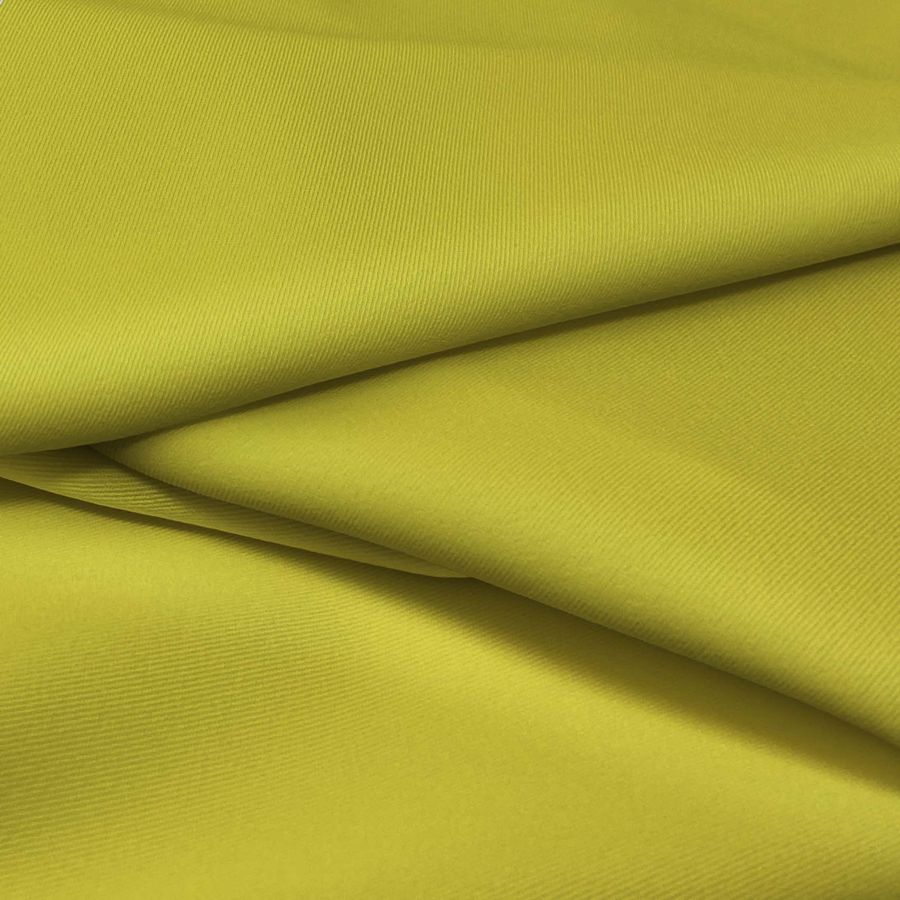 La tela base, Sarga Bielástica - Lisboa, tiene una composición de 97% poliéster y 3% elastano con un gramaje de 209 gr/m2 y un ancho de 150 cm. El color liso impreso es verde latón, con un CMYK de 31 21 90 5, que se puede describir como un color cálido y elegante que se asocia con la naturaleza y la sofisticación. Combina muy bien con colores terrosos, como marrón y beige, y tonos más oscuros, como el negro y el azul noche.