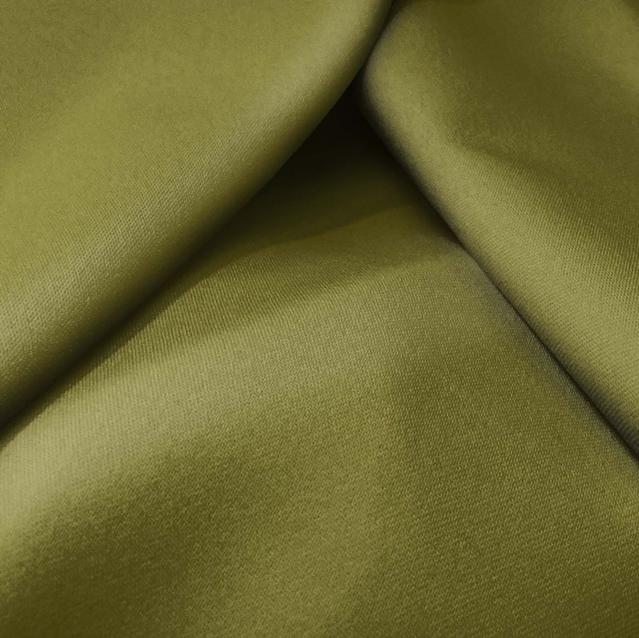 La tela base de este tejido es la Sarga Bielástica - Lisboa, con una composición de 97% poliéster y 3% elastano, un gramaje de 209 gr/m2 y un ancho de 150 cm. El color liso impreso es Verde Bronce Antiguo, con un CMYK de 56 44 100 40. Este color se caracteriza por ser cálido y tenue, evocando la antigua pátina de los bronces y las maderas antiguas. Combina muy bien con tonos tierra, naranjas suaves y ocres. La tela está impresa con el color liso a una sola cara por impresión digital textil.