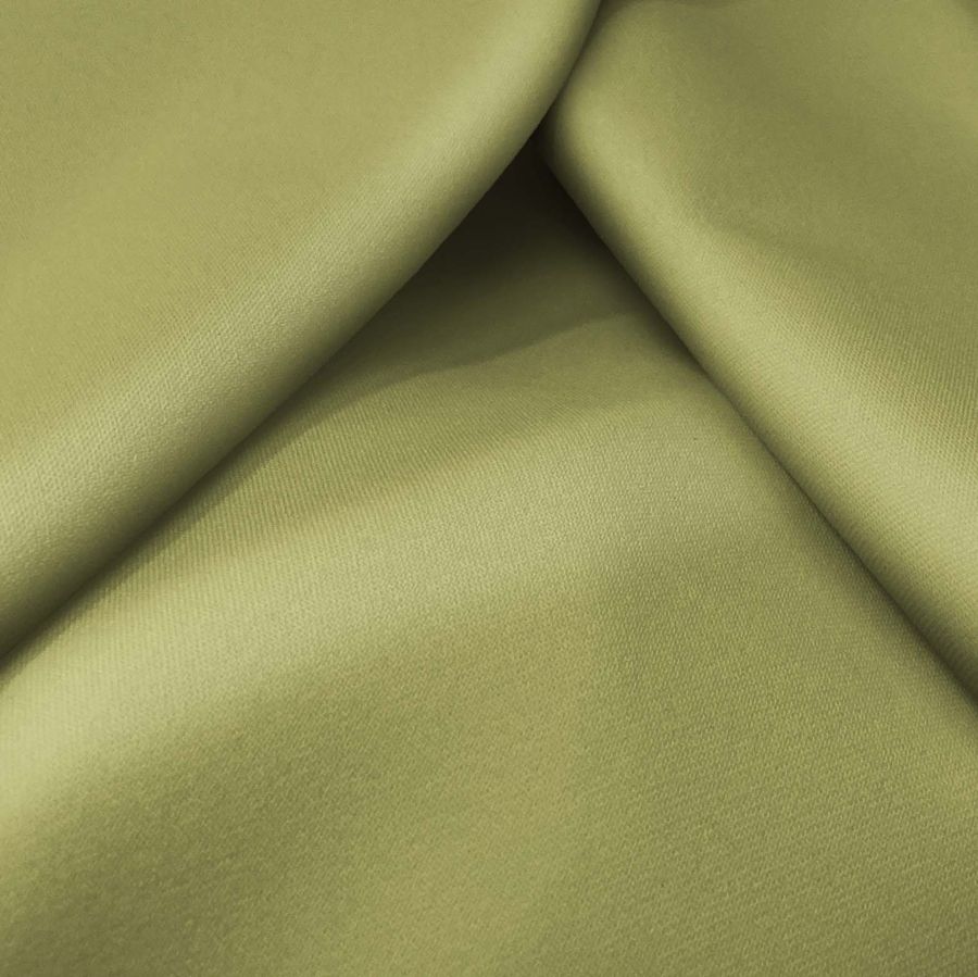 La tela base utilizada para este tejido es la Sarga Bielástica - Lisboa, compuesta mayormente de poliéster y elastano, lo que la hace elástica y cómoda. El color liso impreso es un verde olivo, con una combinación de tintas Cyan, Magenta, Yellow y Black, que le dan un tono cálido y natural. Este color combina muy bien con tonos neutros como el beige, marrones y grises, así como con amarillos mostaza y rojizos.