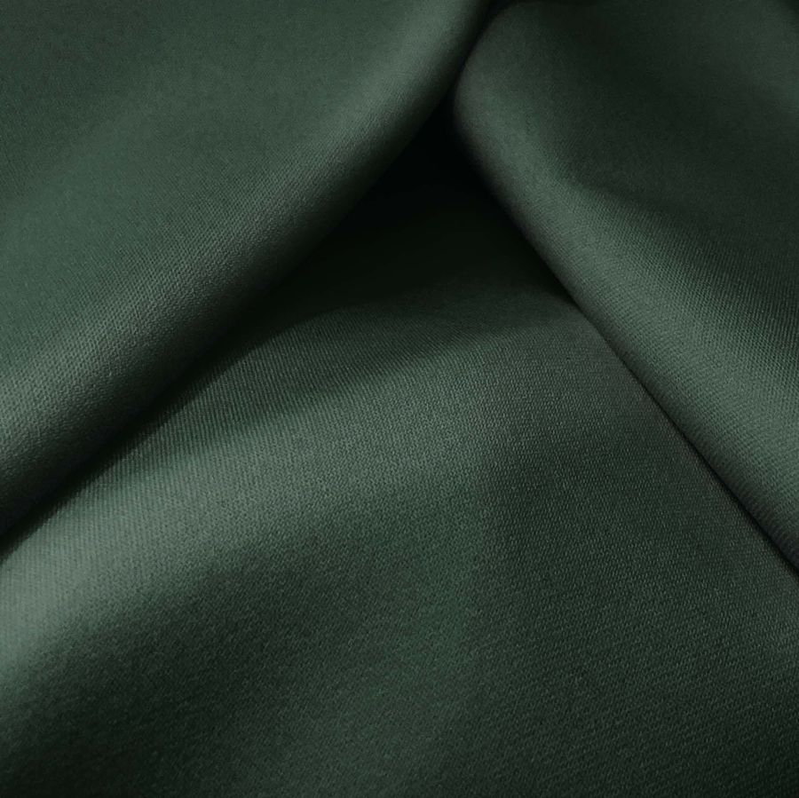 La tela base, Sarga Bielástica - Lisboa, está compuesta por un 97% de poliéster y un 3% de elastano, con un gramaje de 209 gr/m2 y un ancho de 150cm. El color liso impreso en la tela base es un vibrante verde bosque, con un CMYK de 85 57 78 76. Este color evoca la naturaleza y el bosque, con un toque de misterio y elegancia. Se combina especialmente bien con tonos neutros y marrones, así como con colores suaves como el rosa palo o el marfil.