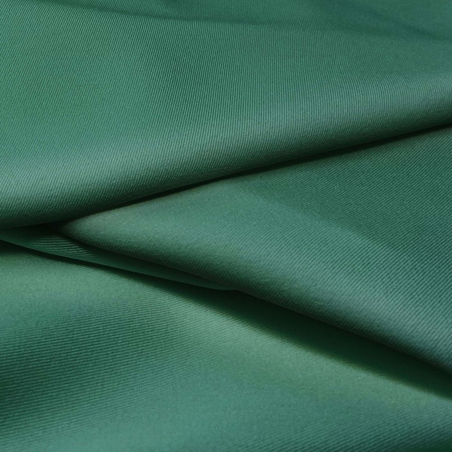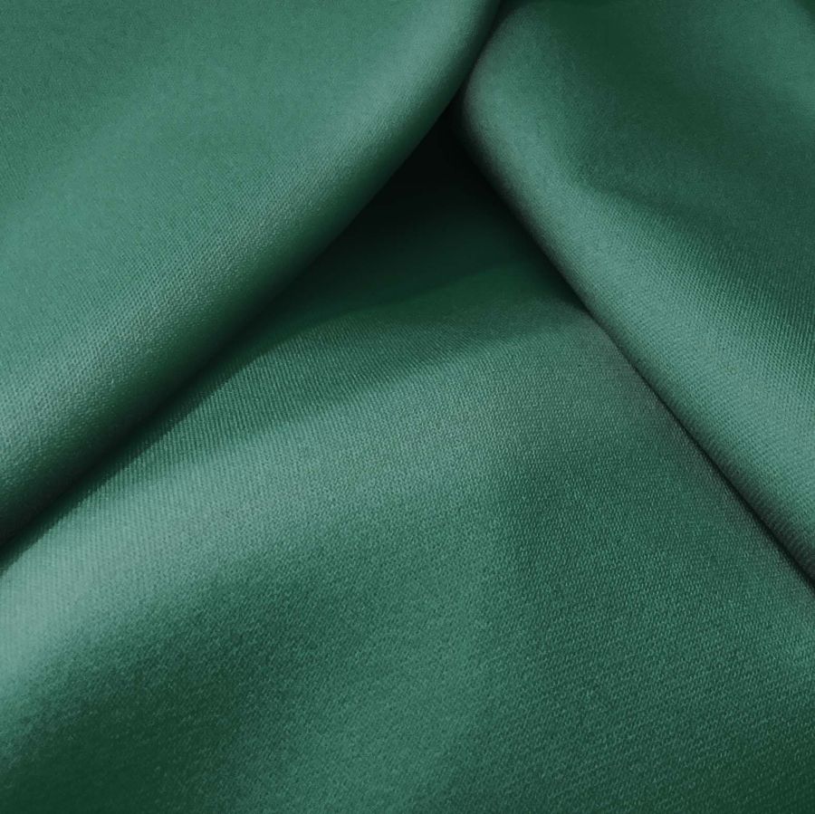 La Sarga Bielástica - Lisboa es un tejido de mezcla de poliéster y elastano de 209 gr/m2 con una textura rugosa y un tacto elástico y suave. El color liso impreso es un verde mar profundo con un CMYK de 84 40 70 42. Este color evoca la profundidad y frescura del mar y combina especialmente bien con tonos tierra o naturales, creando un contraste armónico y elegante.
