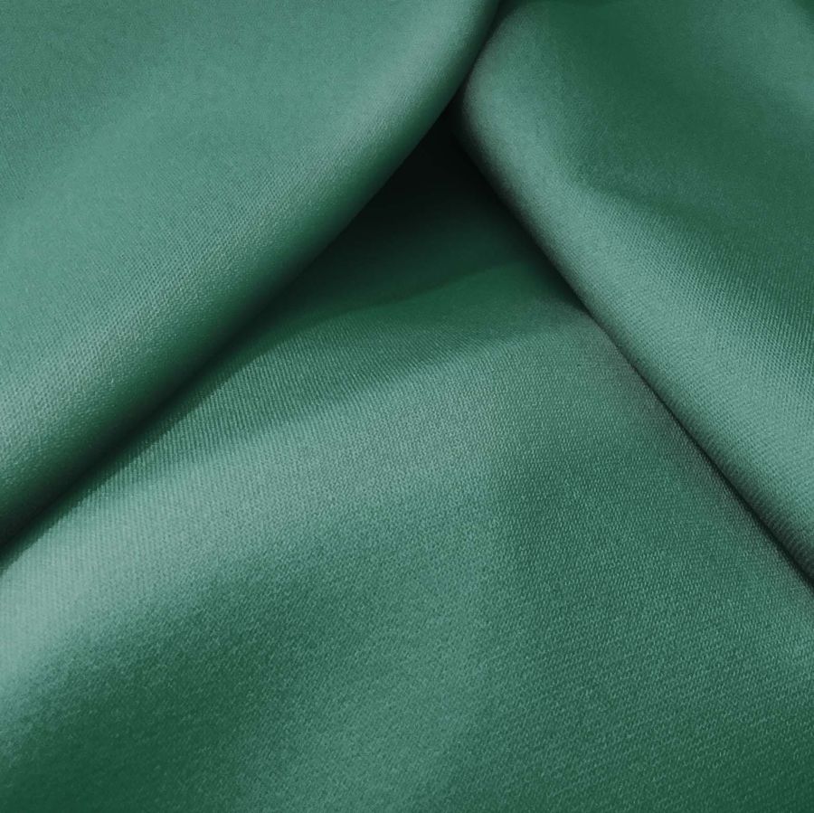 La tela base de la Sarga Bielástica - Lisboa es una mezcla de 97% poliéster y 3% elastano con un peso de 209 gr/m2 y un ancho de 150 cm. Su color liso impreso es un Verde mar profundo que se obtiene con una combinación de tintas Cyan (80), Magenta (37), Yellow (65) y Black (31) en el CMYK. Este color simboliza la profundidad del océano, representando la calma y la estabilidad. Combina muy bien con colores tierra, beige y gris.