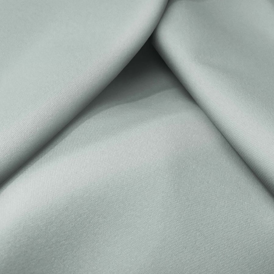 La tela base de este tejido es la Sarga Bielástica - Lisboa, compuesta mayoritariamente por poliéster y elastano, lo que le da una textura elástica, rugosa y suave al tacto, con un gramaje de 209 gr/m2 y un ancho de 150 cm. Su color liso impreso es un azul bebé con una combinación de tintas CMYK de 33 13 24 1. Este color secundario se puede combinar con tonos grises o blancos para lograr un aspecto fresco y limpio.