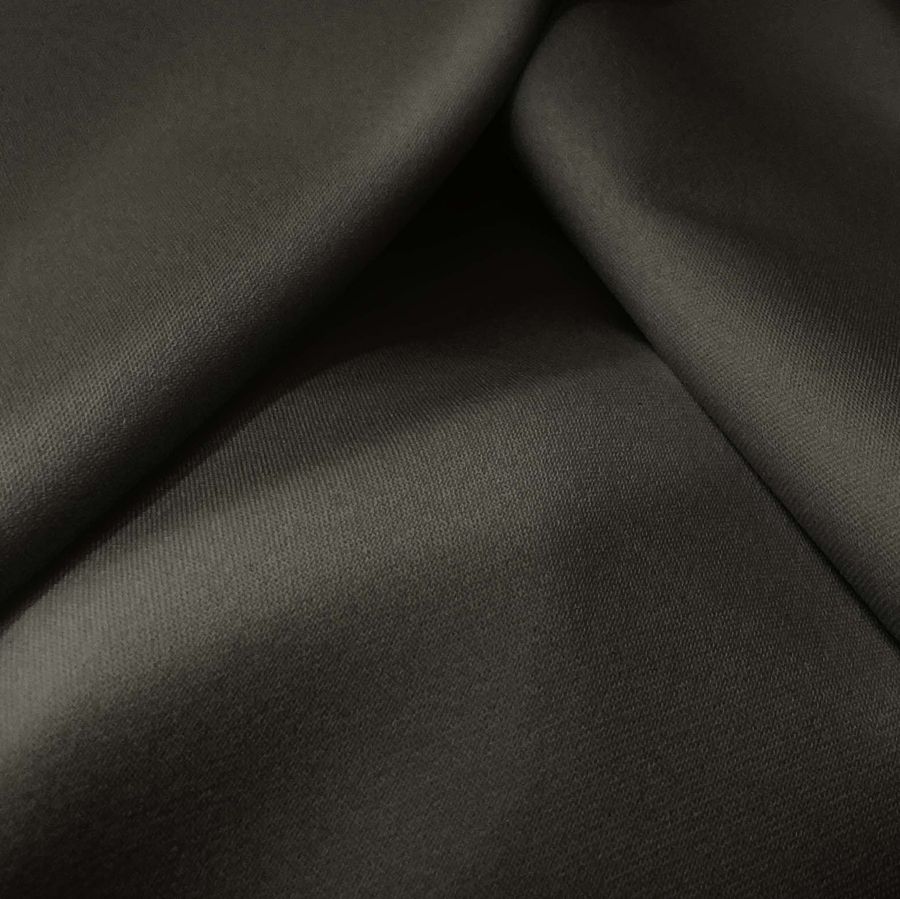 La tela base es la Sarga Bielástica - Lisboa, compuesta por 97% POLIÉSTER y 3% ELASTANO con un gramaje de 209 gr/m2. El color liso impreso es de un negro medianoche con un CMYK de 72 65 75 84. El color es profundo y oscuro, evocando elegancia y sofisticación. Combina especialmente bien con colores metálicos como dorados y plateados, así como con tonos pastel y tierra.